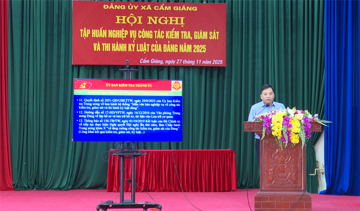Sáng ngày 6/12, Đảng ủy xã Cẩm Giàng tổ chức hội nghị phổ biến, quán triệt Nghị quyết Đại hội Đảng bộ thành phố Hải Phòng lần thứ I, nhiệm kỳ 2025 – 2030 và Chỉ thị 50 ngày 23/7/2025 của Ban Bí thư về tiếp tục đổi mới và nâng cao chất lượng sinh hoạt chi bộ trong giai đoạn mới.