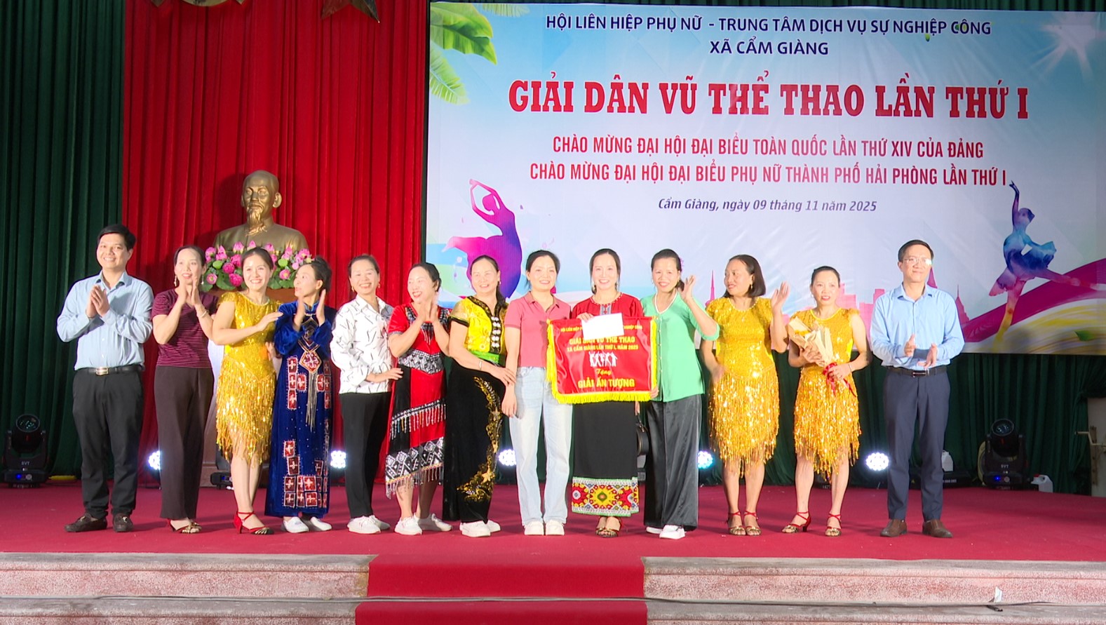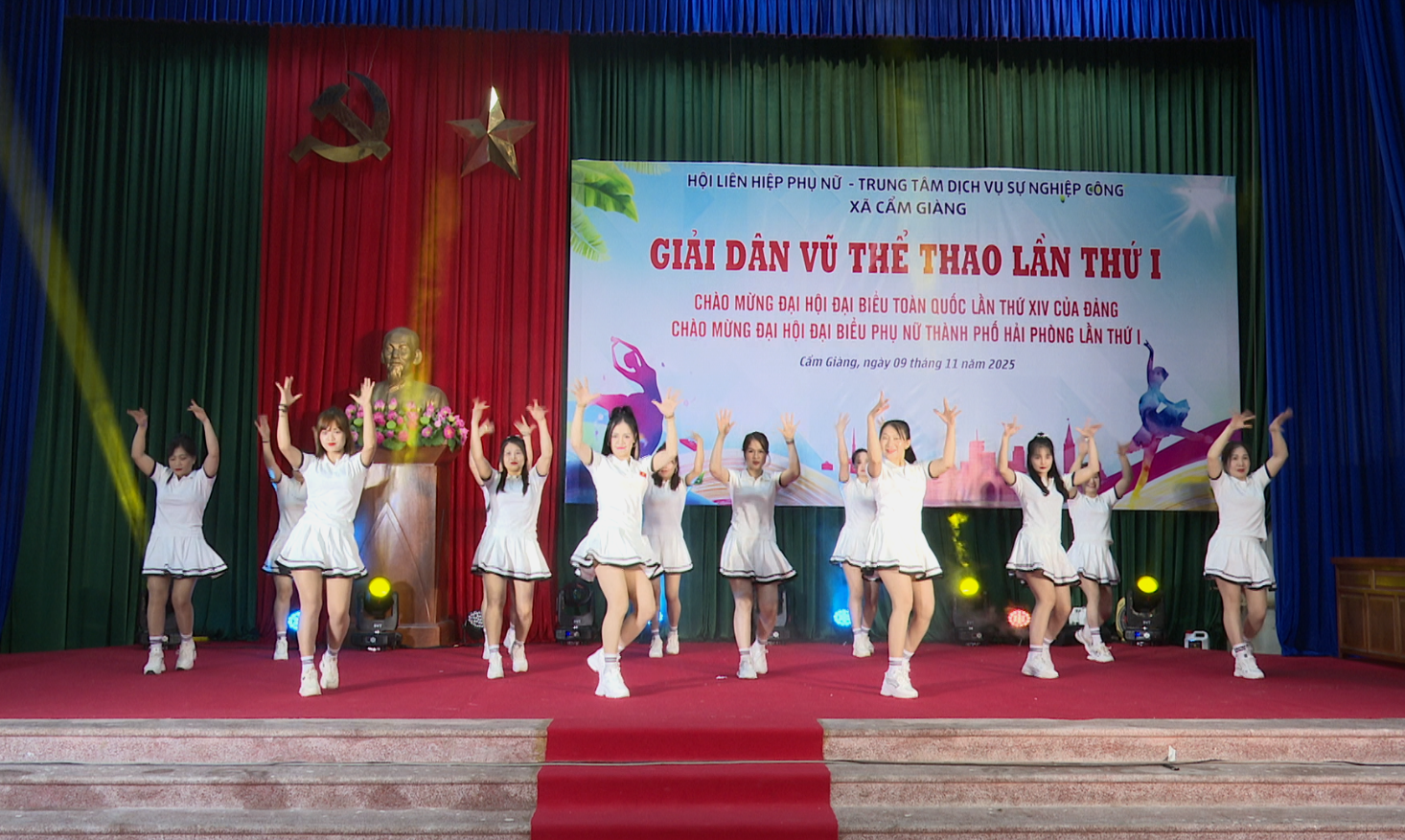Chiều ngày 9/11, Trung tâm Dịch vụ sự nghiệp công xã Cẩm Giàng phối hợp với Hội Liên hiệp phụ nữ (LHPN) xã tổ chức Giải Dân vũ thể thao lần thứ I năm 2025. Tới dự và chúc mừng có đồng chí Nguyễn Quang Sáng, Phó Bí thư Đảng ủy, Chủ tịch UBND xã, đồng chí Đào Văn Cường, Phó Chủ tịch HĐND xã, đồng chí Nguyễn Mạnh Dũng, Phó Chủ tịch Thường trực UBND xã.