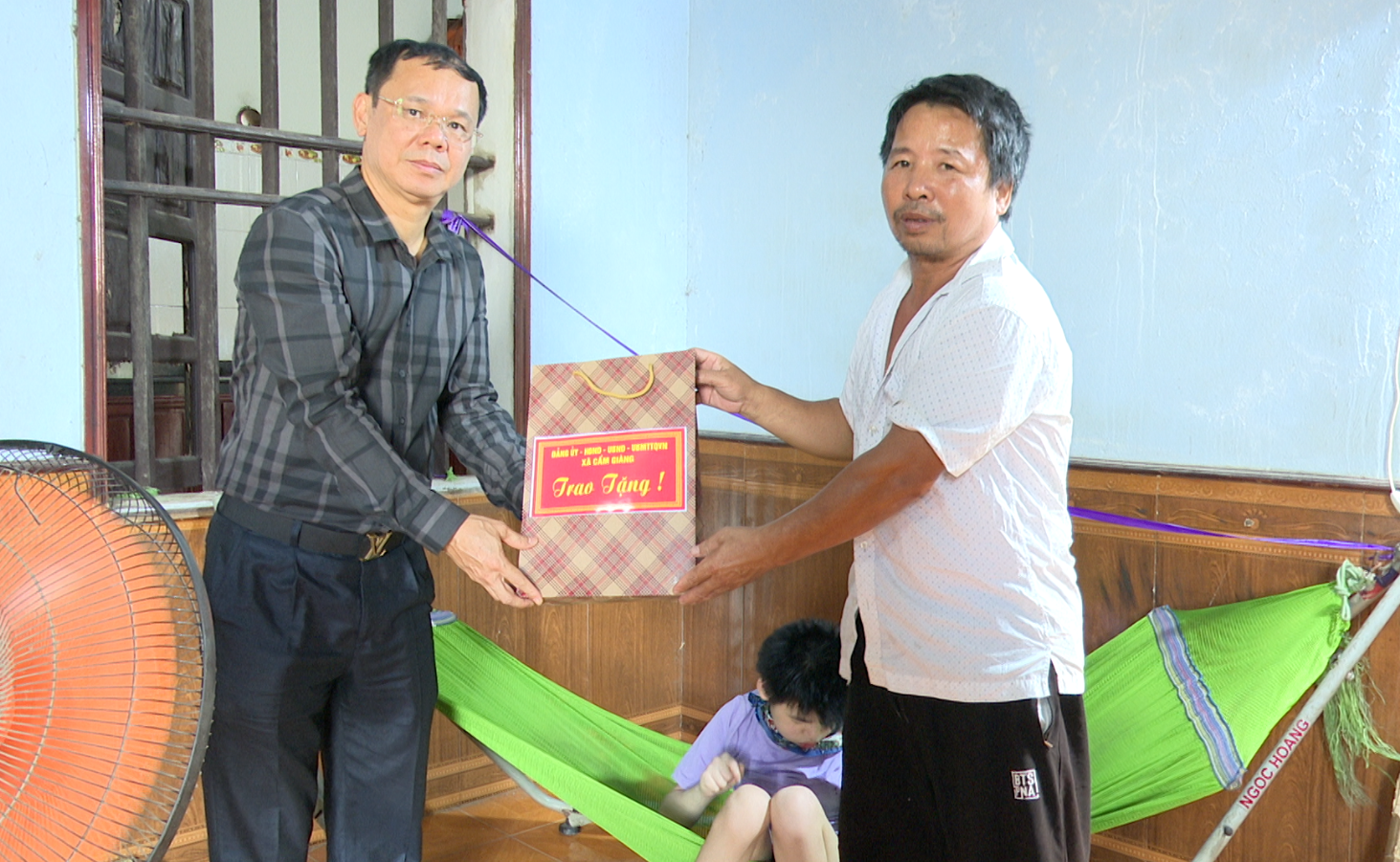 Trao quà và động viên các gia đình, lãnh đạo xã Cẩm Giàng bày tỏ sự chia sẻ trước hoàn cảnh và những khó khăn riêng của mỗi gia đình. Mong muốn các gia đình tiếp tục nỗ lực, cố gắng vượt qua khó khăn, phát triển kinh tế và chăm sóc tốt cho trẻ khuyết tật và trẻ em khó khăn. Đồng thời đề nghị các cơ sở thôn quan tâm tổ chức các hoạt động vui Tết Trung thu cho cháu, đặc biệt là trẻ em khuyết tật và trẻ em có hoàn cảnh khó khăn.