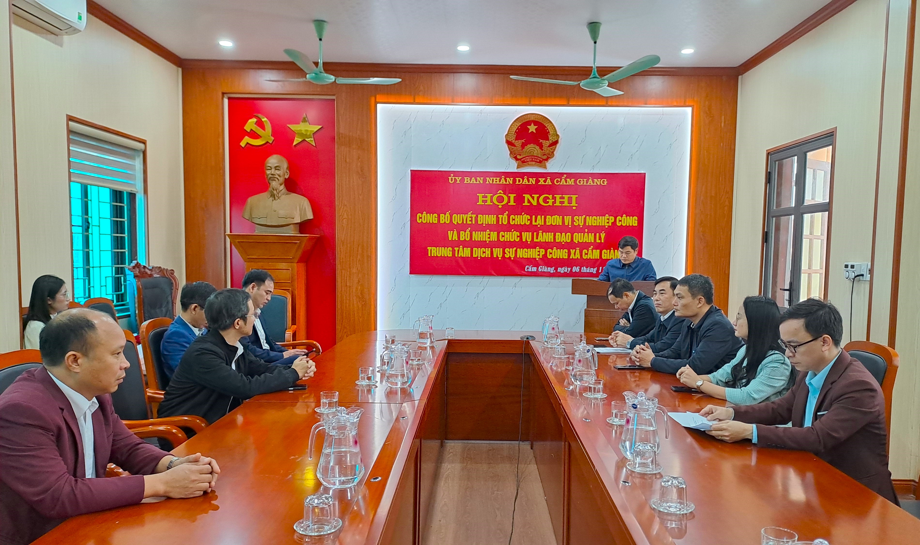 Sáng ngày 6/11, UBND xã Cẩm Giàng tổ chức công bố quyết định tổ chức lại đơn vị sự nghiệp công lập và bổ nhiệm chức vụ quản lý Trung tâm dịch vụ sự nghiệp công xã.