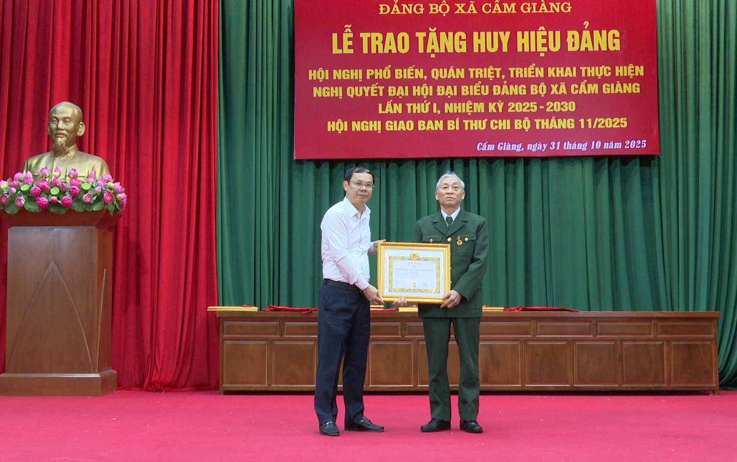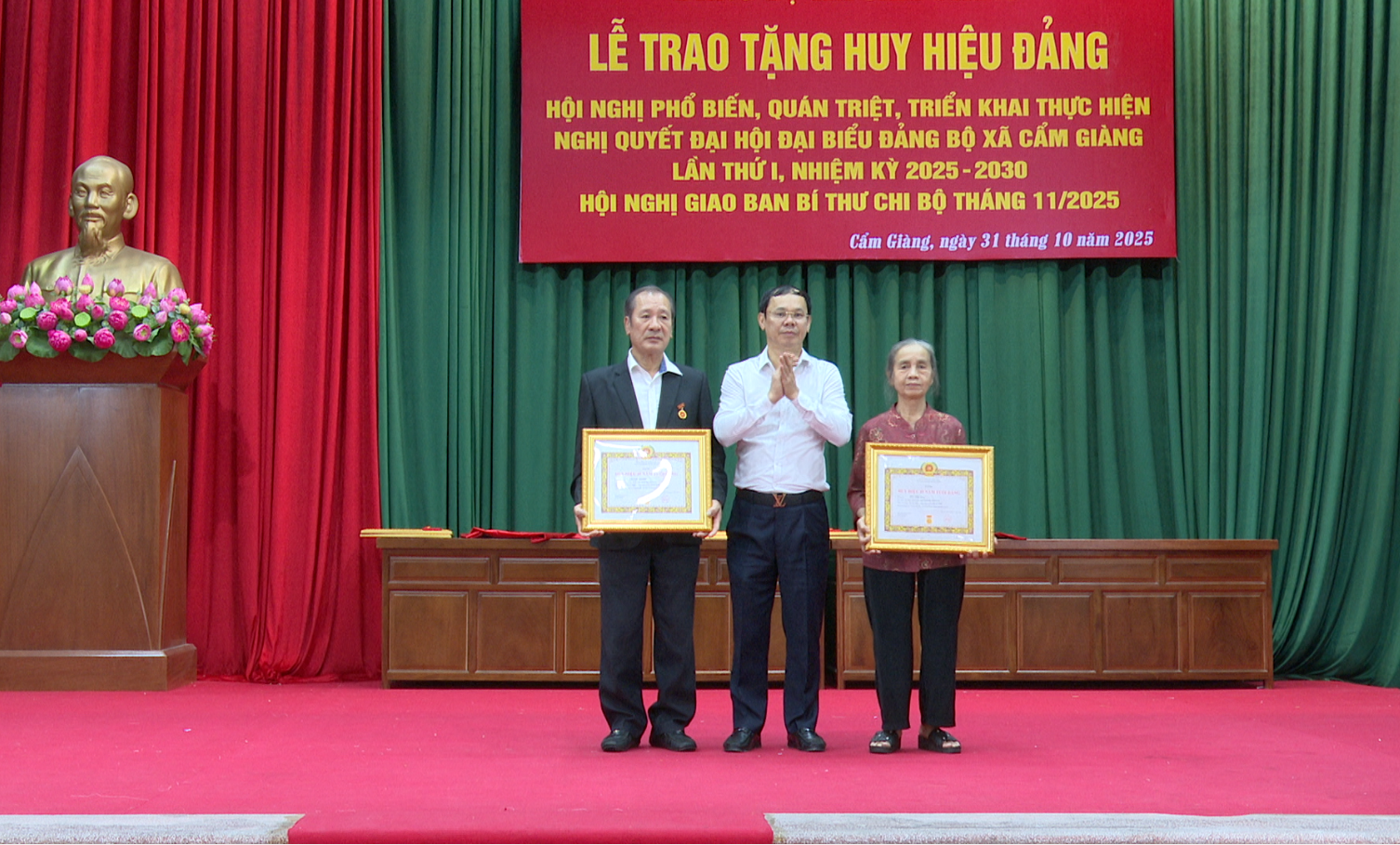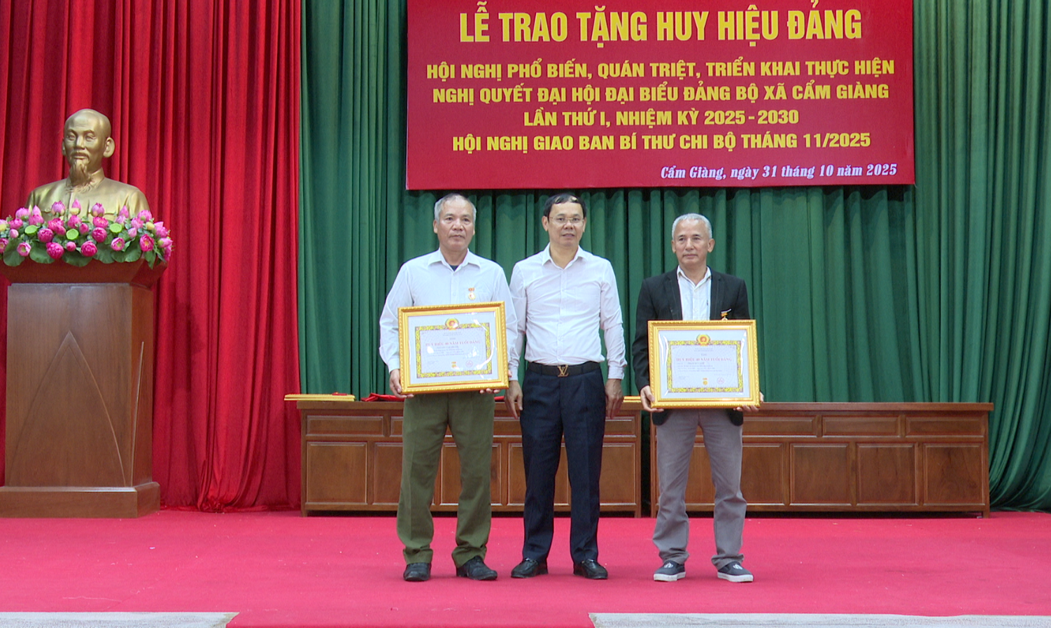 Trong đợt này, Đảng bộ xã Cẩm Giàng có 9 đảng viên được nhận Huy hiệu Đảng, trong đó có 8 đồng chí tặng Huy hiệu Đảng và 1 đồng chí truy tặng Huy hiệu Đảng. Trong đó, có 1 đảng viên nhận Huy hiệu 55 năm tuổi Đảng, 1 đảng viên 50 năm tuổi Đảng, 3 đảng viên 45 năm tuổi Đảng; 2 đảng viên 40 năm tuổi Đảng, 2 đảng viên 30 năm tuổi Đảng.