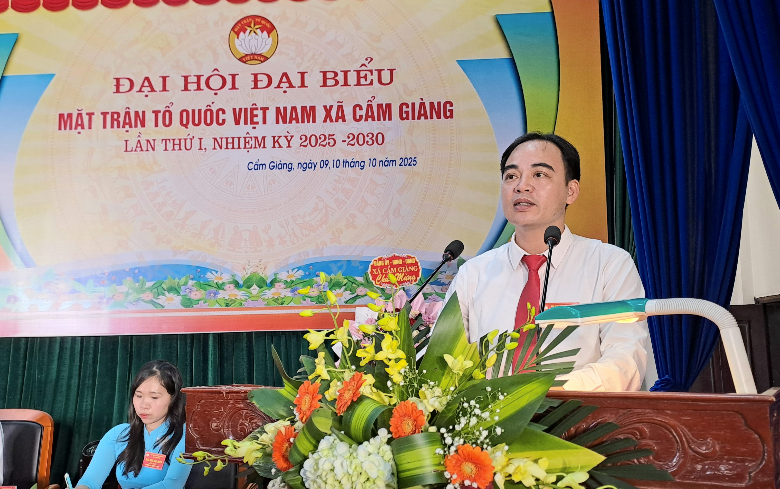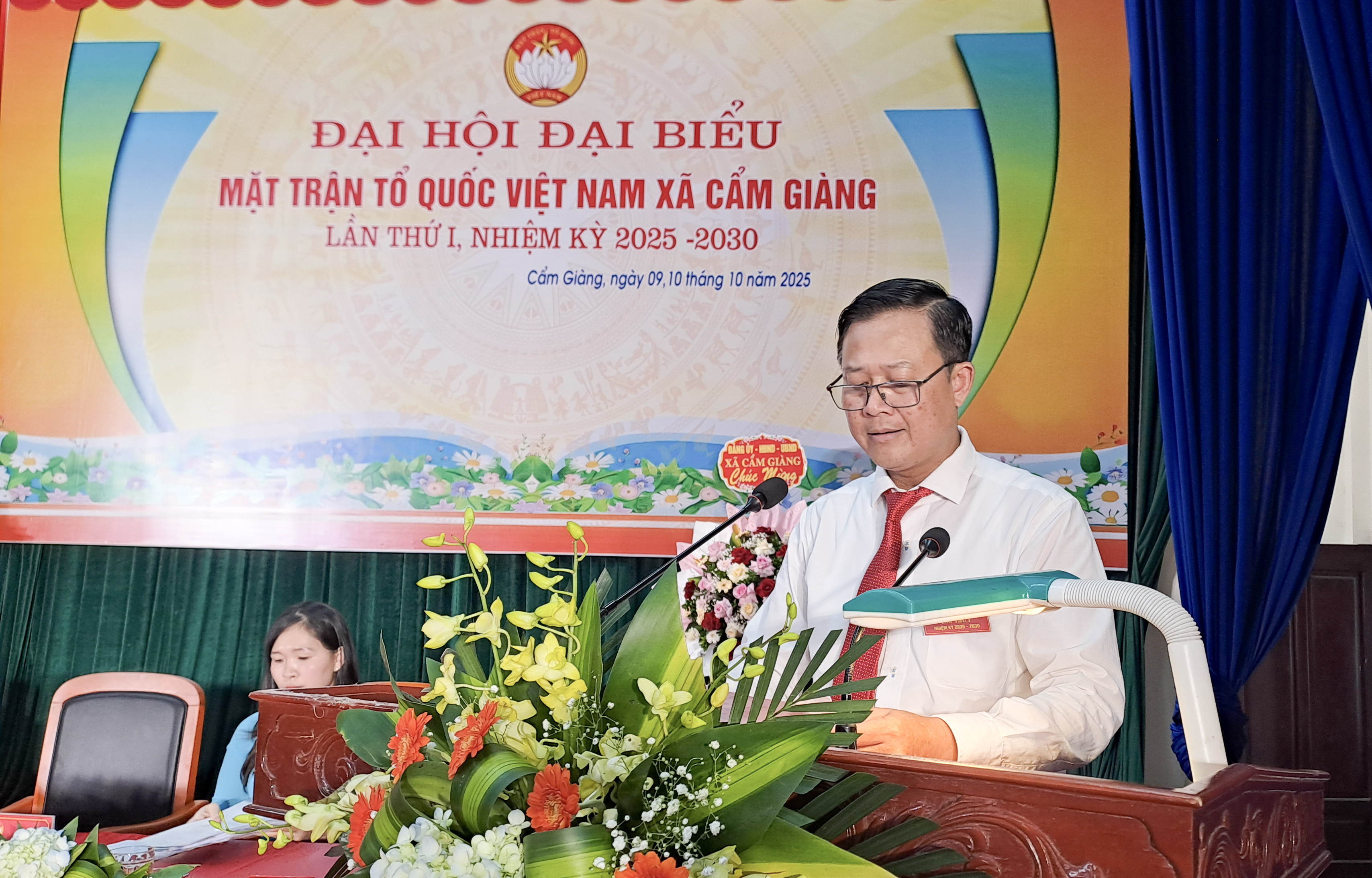 Chiều ngày 9/10, Đại hội Đại biểu Mặt trận Tổ quốc Việt Nam xã Cẩm Giàng lần thứ I, nhiệm kỳ 2025-2030 tiến hành ngày làm việc thứ nhất tại Hội trường Trung tâm xã. Đại hội có sự tham dự của 130 đại biểu tiêu biểu, đại diện cho các tầng lớp nhân dân, khối đại đoàn kết toàn dân trên địa bàn xã.