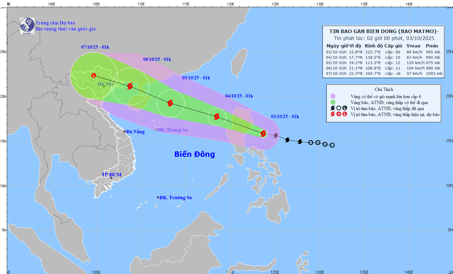 Vị trí và đường đi của bão Matmo. (Nguồn: Trung tâm Khí tượng Thủy văn Quốc gia)
