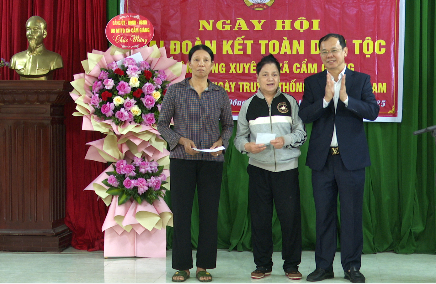 Nhân dịp này, Ủy ban Mặt trận tổ quốc Việt Nam xã Cẩm Giàng đã trích Quỹ Vì người nghèo trao tặng 46 suất quà cho những hoàn cảnh khó khăn.