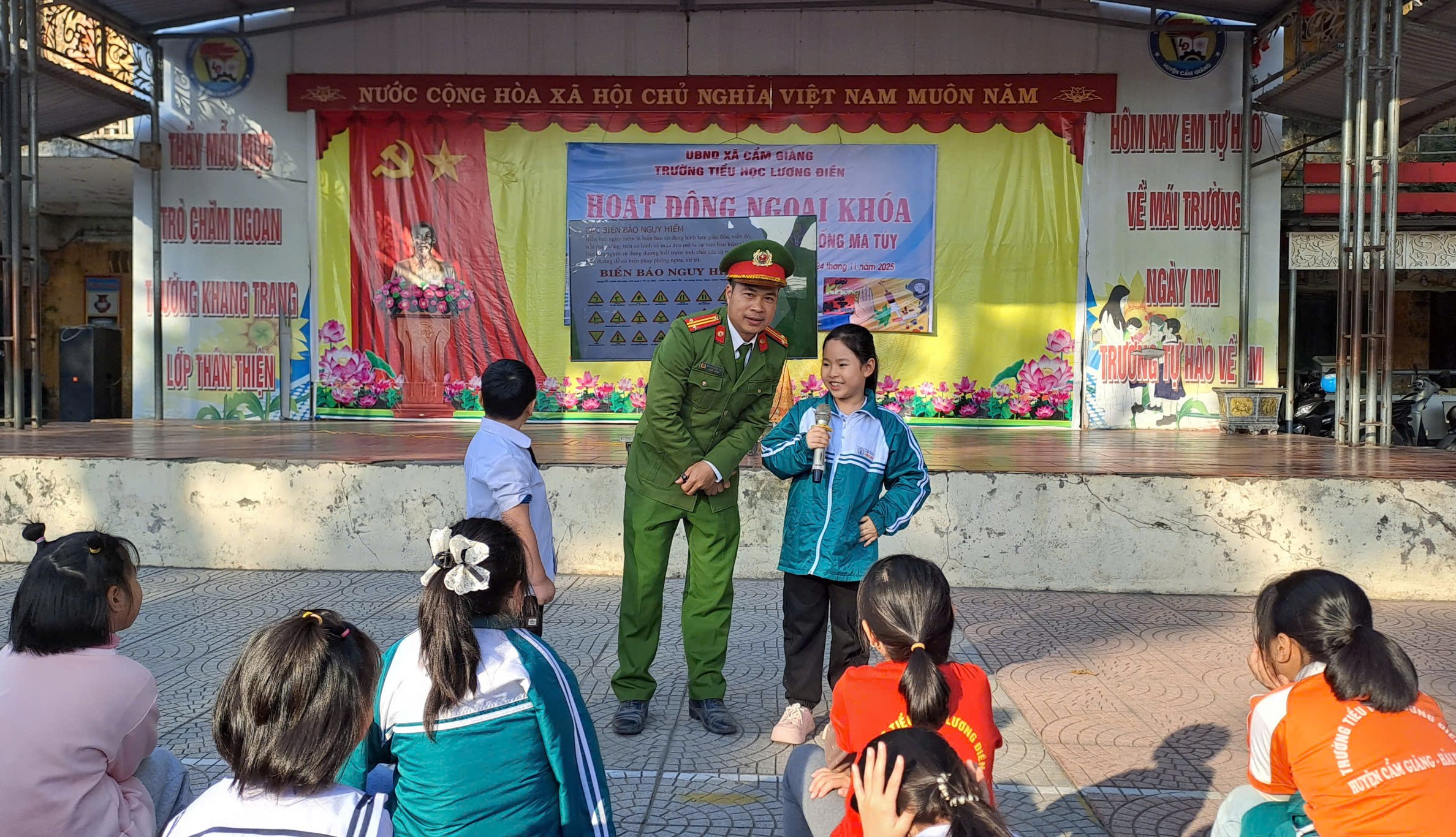 Sáng ngày 24/11, trường Tiểu học Lương Điền, xã Cẩm Giàng phối hợp cùng Công an xã tổ chức buổi hoạt động ngoại khóa tuyên truyền thực hiện pháp luật trật về trật tự an toàn giao thông và phòng chống ma túy.