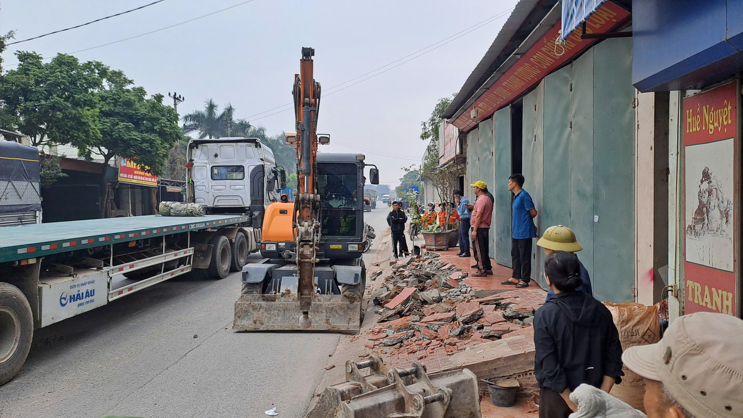 Xã Cẩm Giàng ra quân giải tỏa vi phạm hành lang an toàn giao thông Quốc lộ 38 đoạn qua địa bàn xã